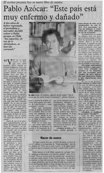 Pablo Azocar, "este país está muy enfermo y dañado" [artículo].