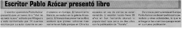 Autores chilenos - AZOCAR, PABLO - VIVIR NO ES NADA NUEVO