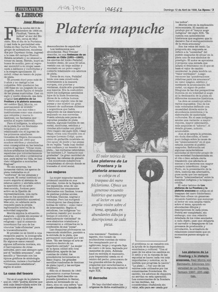 "Los plateros de la frontera y la platería araucana" [artículo]