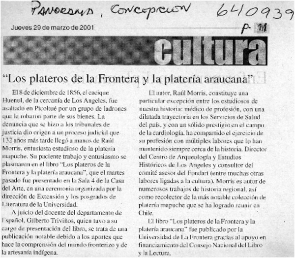 Autores chilenos - Morris von Bennewitz, Raúl - Plateros de la frontera y la platería araucana