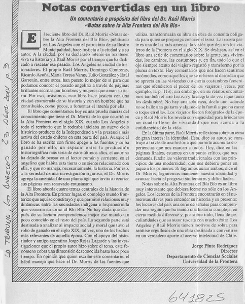 Notas convertidas en un libro [artículo] Jorge Pinto Rodríguez