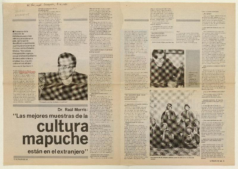 "Las mejores muestras de la cultura mapuche están en el extranjero" [artículo] Olga Elgueta A.