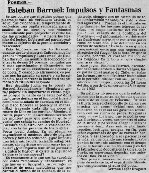 Esteban Barruel, "Impulsos y fantasmas" [artículo] Germán López Droguett.