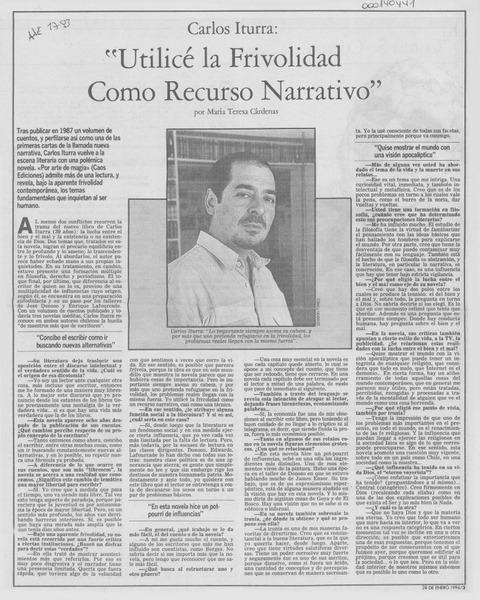 "Utilicé la frivolidad como recurso narrativo" [artículo] María Teresa Cárdenas.