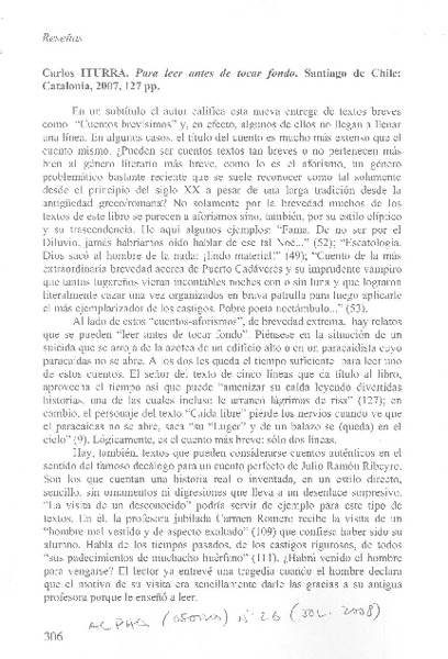 Autores chilenos - Iturra, Carlos - Para leer antes de tocar fondo