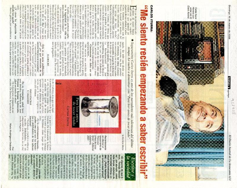 Carlos Iturra: "Me siento recién empezando a saber escribir (entrevista) [artículo]Mario Rodríguez Ordenes.