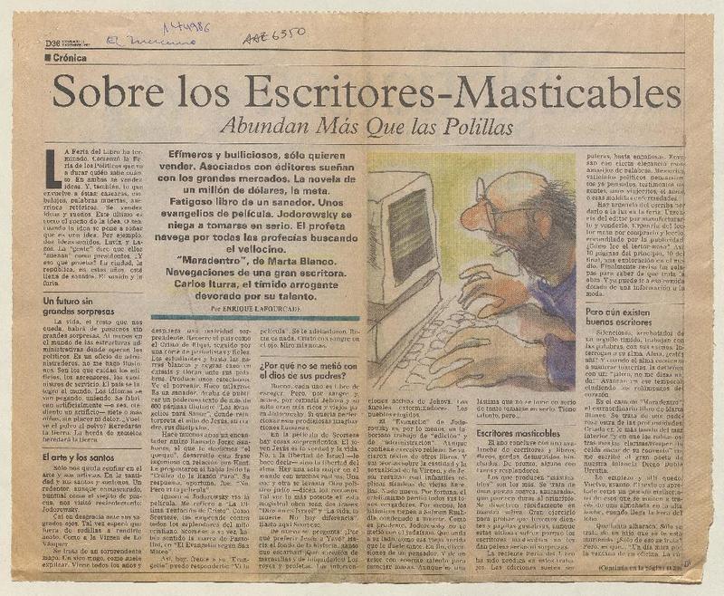 Sobre los escritores-masticables [artículo] Enrique Lafourcade.