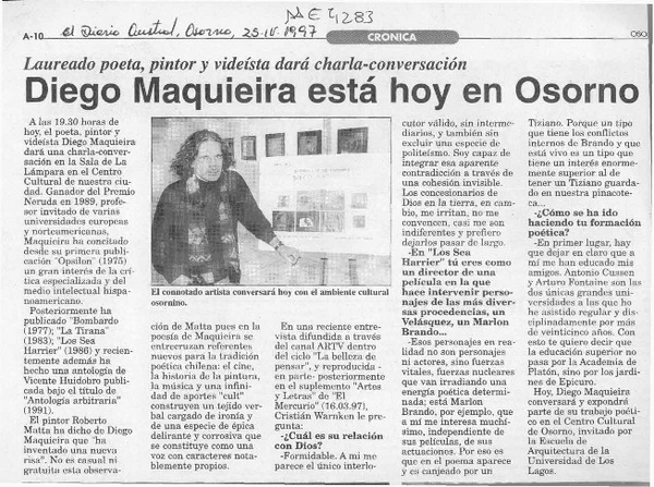 Diego Maquieira está hoy en Osorno [artículo].