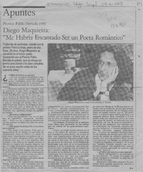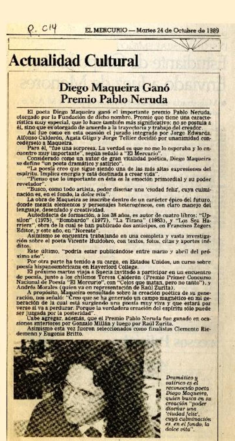 Diego Maquieira premio Pablo Neruda 1989 [artículo].