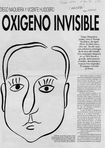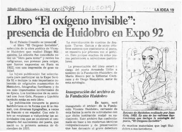 Libro "El oxígeno invisible", presencia de Huidobro en Expo 92 [artículo].