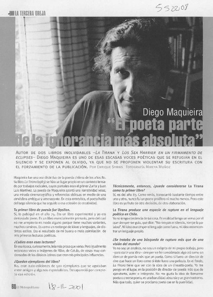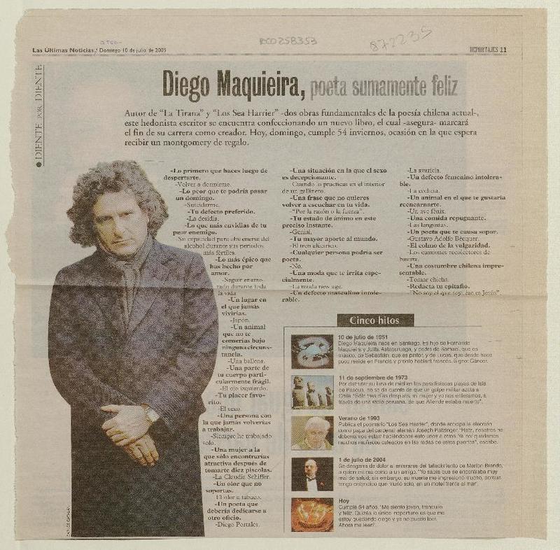 Diego Maquieira, poeta sumamente feliz. (entrevistas) [artículo]