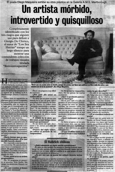 Un artista mórbido, introvertido y quisquilloso: [entrevistas] [artículo] Guadalupe Fonseca.