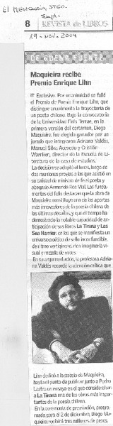Maquieira es premio Enrique Lihn [artículo]