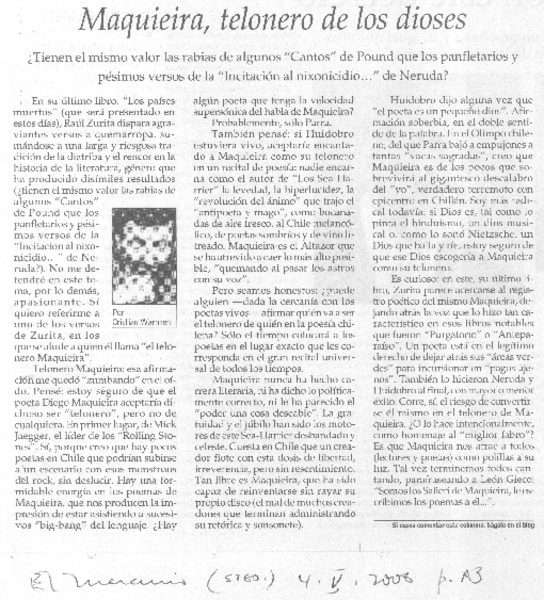 Maquieira, telonero de los dioses [artículo] Cristián Warnken.