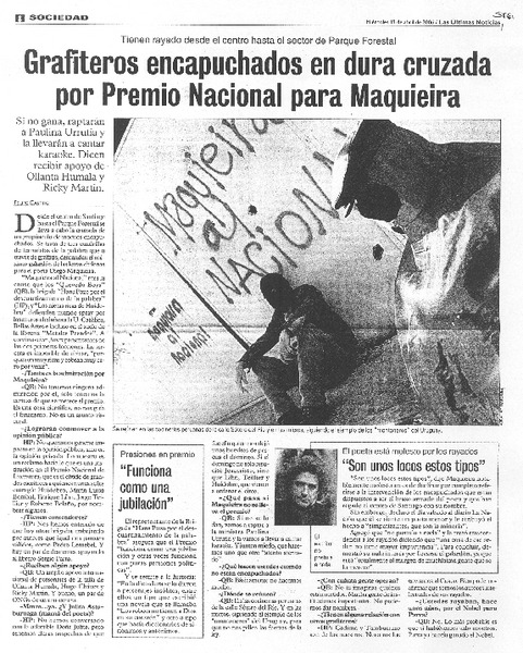 Grafiteros encapuchados en dura cruzada por Premio Nacional para Maquieira [artículo] 7 Felipe Castro.