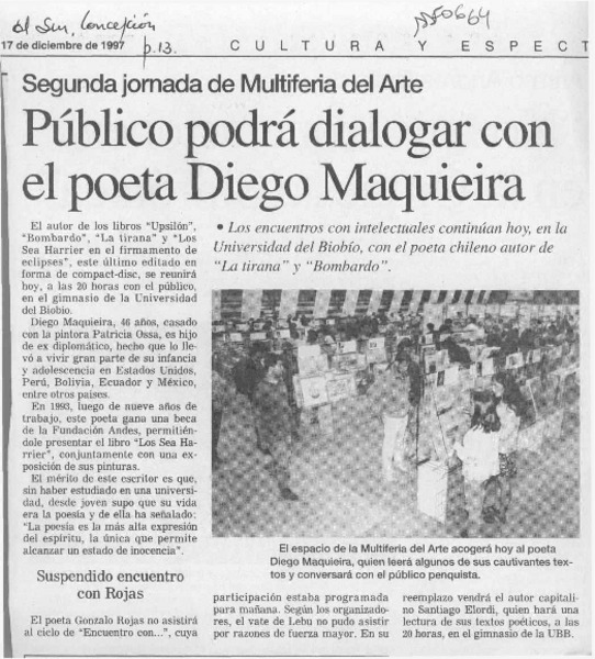 Público podrá dialogar con el poeta Diego Maquieira [artículo].