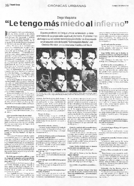"Le tengo más miedo al infierno" (entrevista) [artículo] Eduardo Bravo Pezoa.