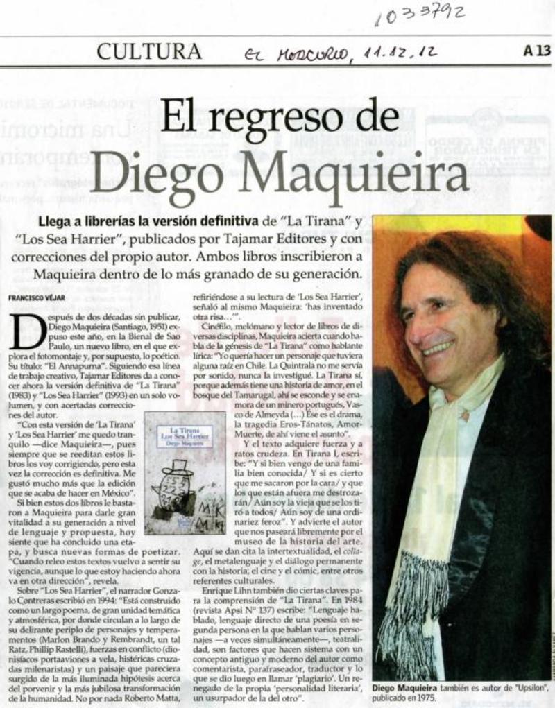 El regreso de Diego Maquieira [artículo]Francisco Vejar
