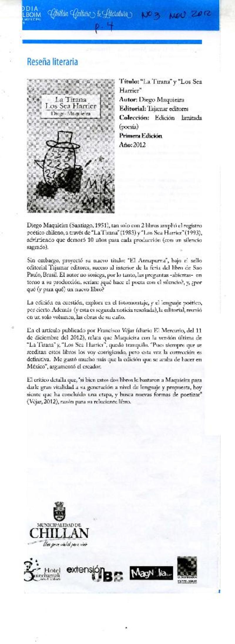 Autores chilenos - Maquieira, Diego - Tirana, Los Sea Harrier