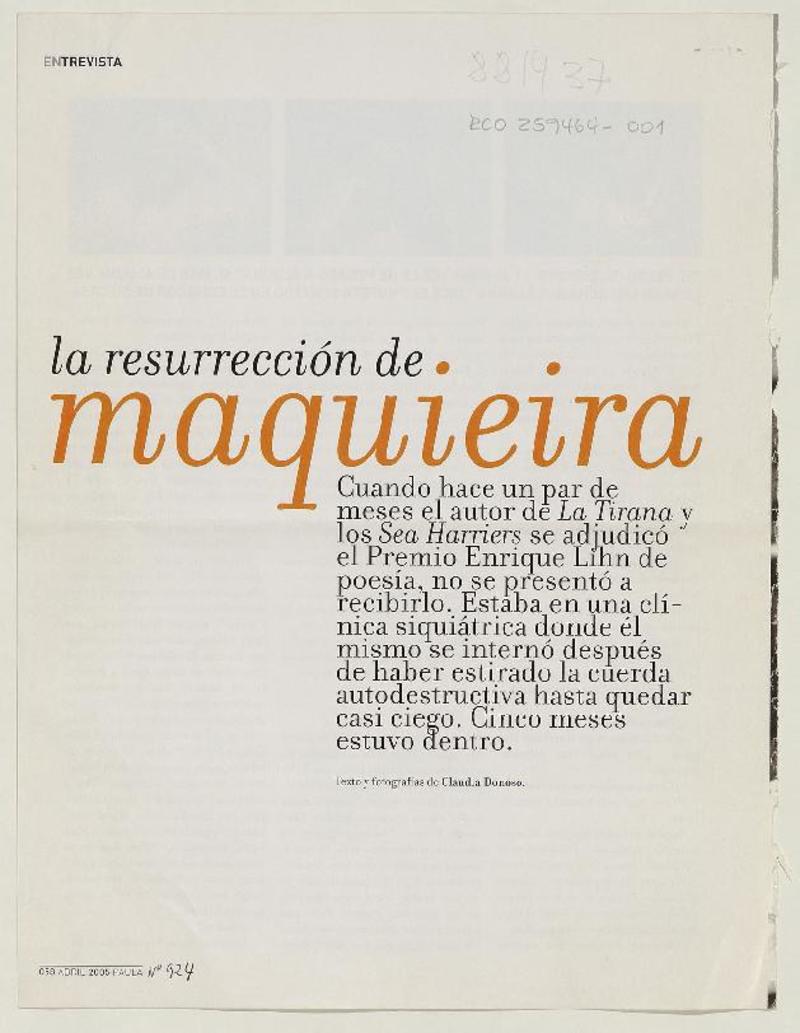 La Resurreción de Maquieira. [artículo] Claudia Donoso