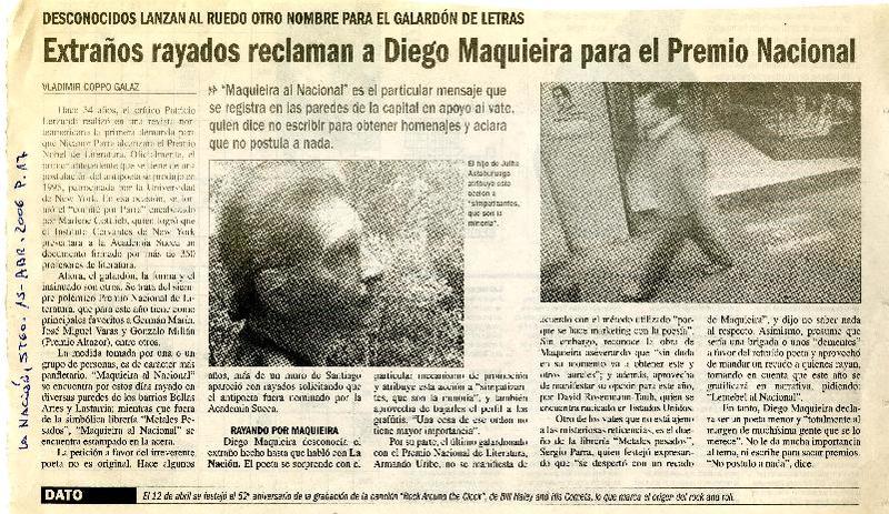 Extraños rayados reclaman a Diego Maquiera para Premio Nacional [artículo]