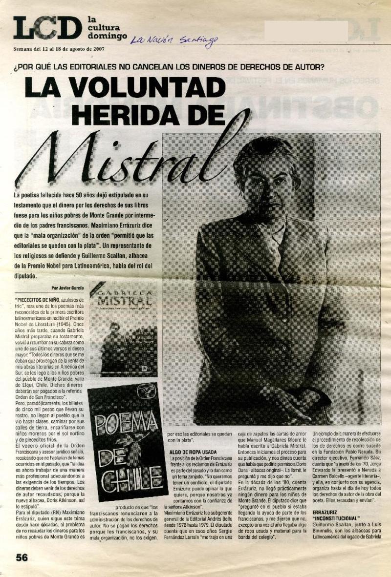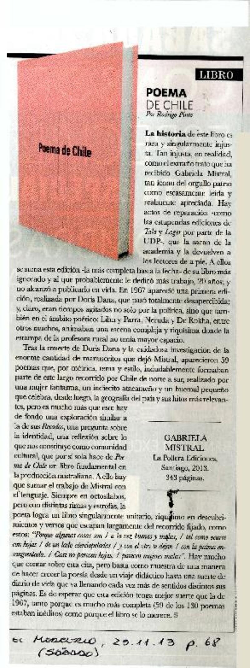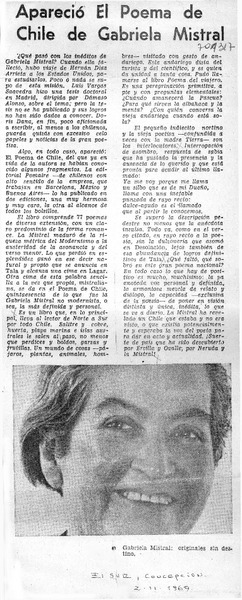 Apareció el Poema de Chile de Gabriela Mistral. [artículo]