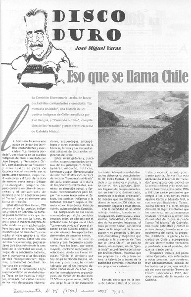 Autoras chilenas - Autores chilenos - Mistral, Gabriela - Bengoa Galdona, José - Poema de Chile - Memoria olvidada