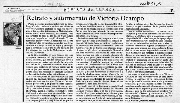 Retrato y autorretrato de Victoria Ocampo [artículo].