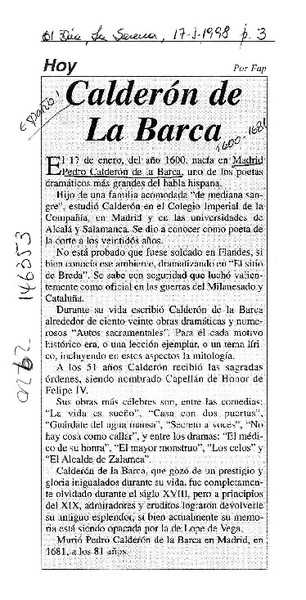 Pedro Calderón de la Barca [artículo] Hernán de la Carrera Cruz.