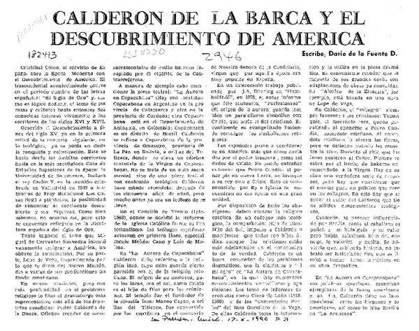 Calderón de la Barca y el descubrimiento de América [artículo] Darío de la Fuente D.