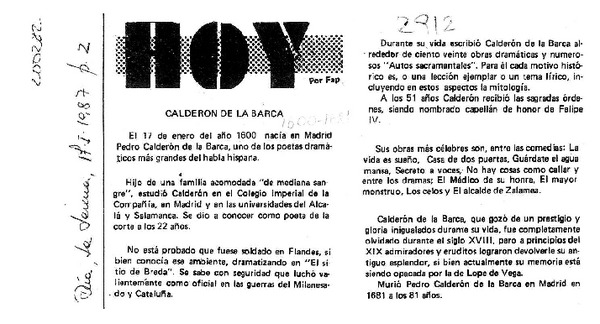 Calderón de la Barca [artículo] Braulio Fernández Biggs.