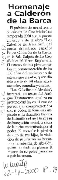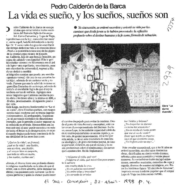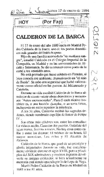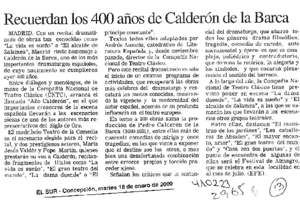 Recuerdan los 400 años de Calderón de la Barca [artículo]