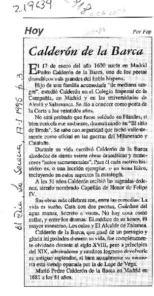 Pedro Calderón de la Barca (1600-1681). [artículo]