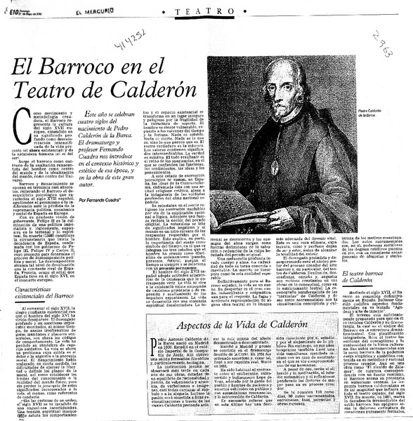 El Barroco en el teatro de Calderón [artículo] Fernando Cuadra