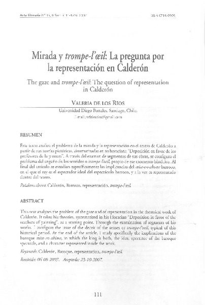Mirada y trompe-l´oeil: La pregunta por la representación en Calderón [artículo]Valeria de los Ríos.