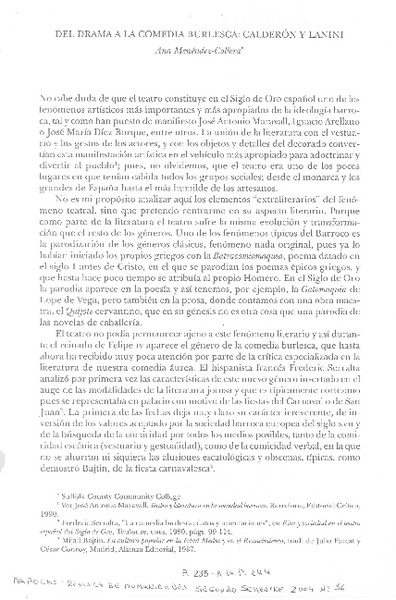 Del Drama a la comedia buslesca: Calderón y Lanini [artículo]Ana Menéndez- Collera.