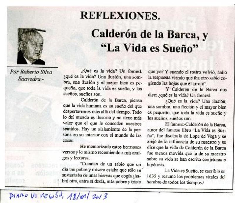 Calderón de la Barca, y "La Vida es Sueño" [artículo] Roberto Silva Saavedra
