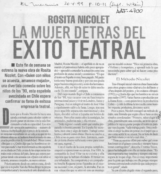 La mujer detrás del éxito teatral [artículo] Claudia Guzmán V.