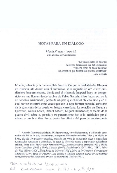Notas para un diálogo [artículo] María Nieves Alonso M.