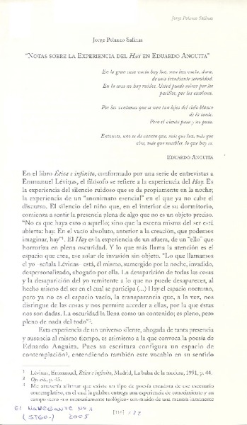 Notas sobre la experiencia del Hay en Eduardo Anguita [artículo] Jorge Polanco Salinas.
