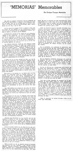 "Memorias" de Gabriel González Videla (II) [artículo] Fap.