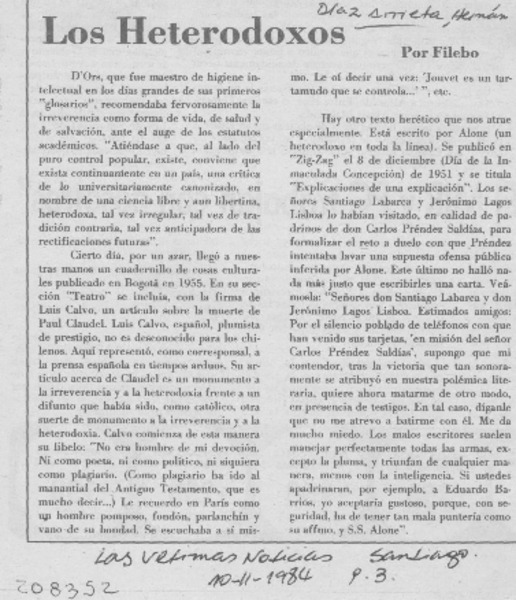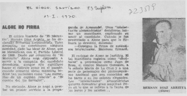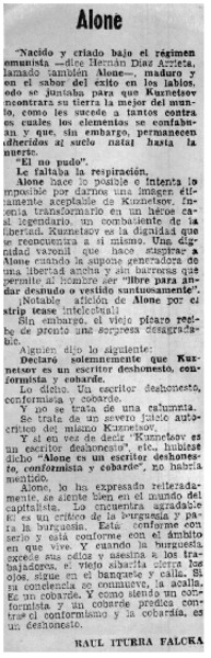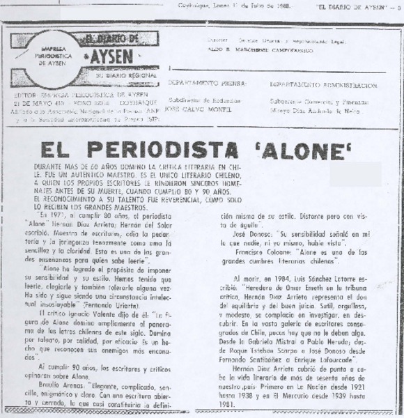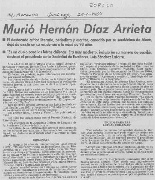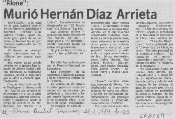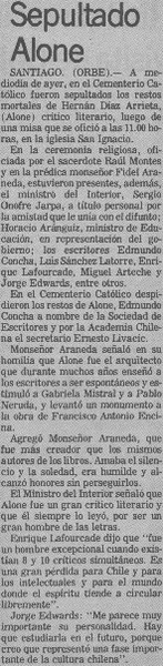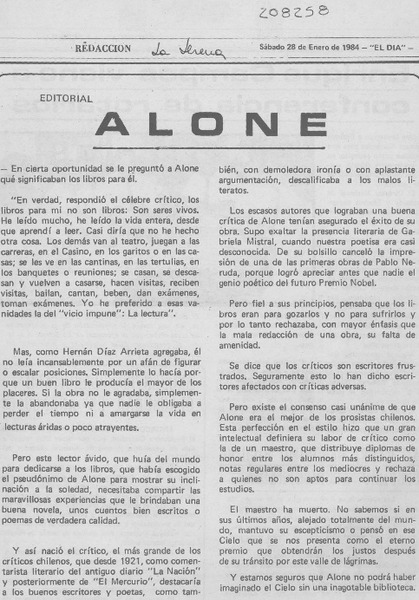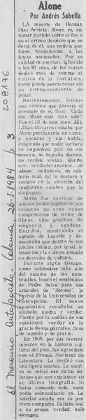 Ayer fue sepultado Hernán Díaz Arrieta, Alone [artículo]