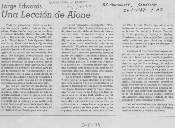 Una lección de Alone [artículo] Jorge Edwards.