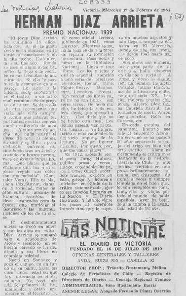 Murió Hernán Díaz Arrieta [artículo].