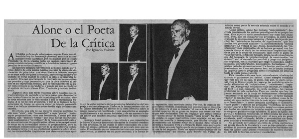 Alone o el poeta de la crítica [artículo] Ignacio Valente.