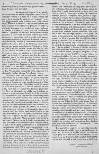 "Cartas de Alone a una mujer desconocida" [artículo] Carlos Iturra.
