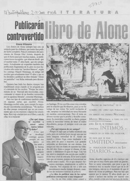 Publicarán controvertido libro de Alone [artículo] Ximena Villanueva.