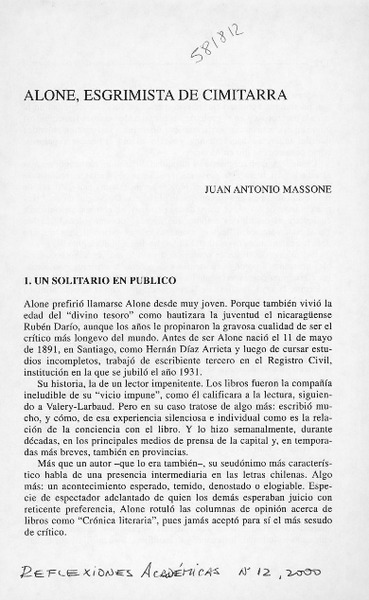 Alone, maestro Nacional de la Crítica Literaria [artículo] Sergio Fernández Larraín.