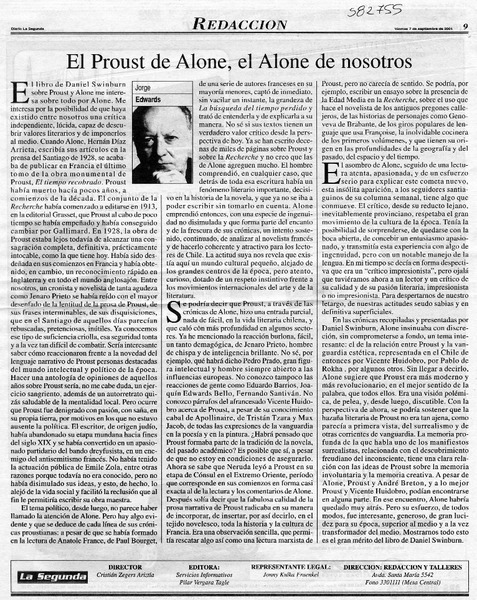 Autores chilenos - Alone - Proust, Marcel - Swinburn, Daniel - Autores internacionales