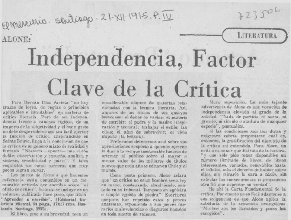 La soledad de oro de Alone [artículo] Edmundo Concha.